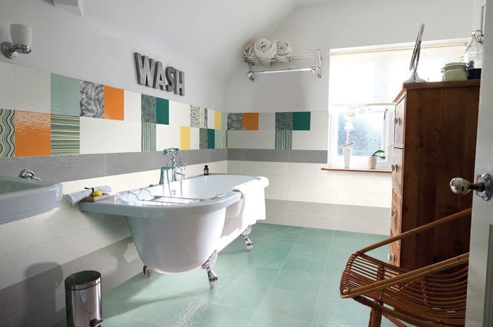 ריצוף פורצלן מפואר בגימור מבריק המגיע בגודל עשרים ואחד על עשרים ואחד, קל לתחזוקה, ומעניק מראה ייצוגי.