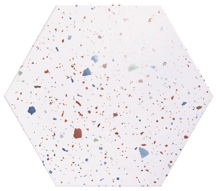 פורצלן משושה טראצו לבן אבנים צבעוניות